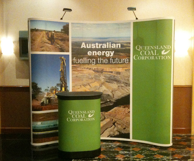 - Each package includes backdrop system (curved or straight), branded counter that converts from transport case, professional spotlights, and complete setup instructions. Everything needed for professional exhibition booth.